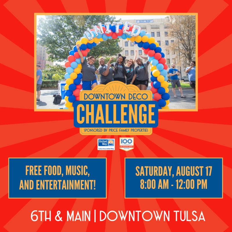 The United Way is having the Downtown Deco Challenge on Saturday August 17th. The event runs from 8am-12pm at 6th & Main in Downtown Tulsa. The Price Family Properties will donate $100 to the United Way for every person (and pet) who goes through the Balloon Arch, So bring your friends, family, and your pets to help raise money for the Tulsa Area United Way.