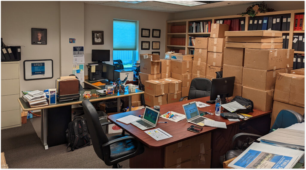 Current Office situation for the President, VP and Recording Secretary. Our Staff gets the Desk at the back wall.