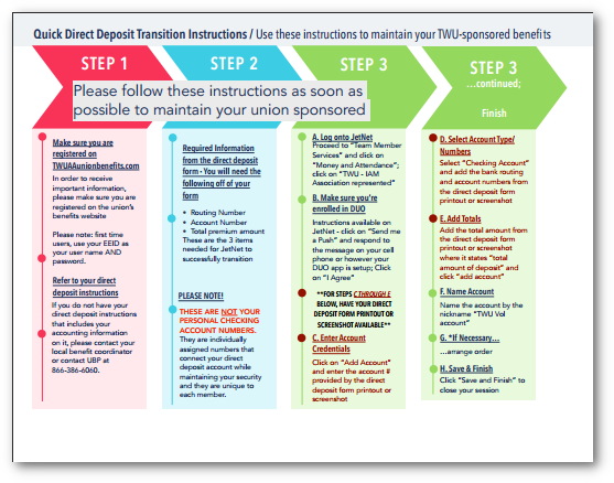 In order to avoid a lapse in coverage, you must set up your direct deposit in JetNet AS SOON AS POSSIBLE with the correct premium amount (keep reading for instructions on how to obtain this).