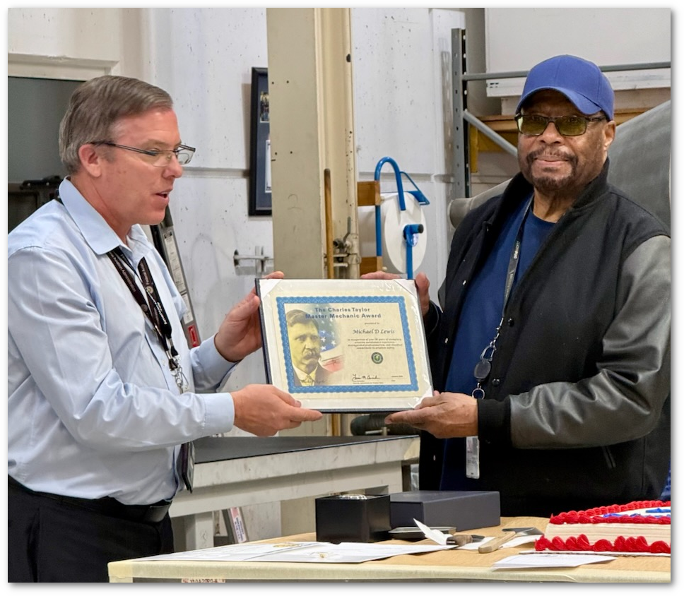 Local 514 Brother, Micheal Lewis, Crew Chief Aviation Maintenance Technician receives the Charles Taylor Award!