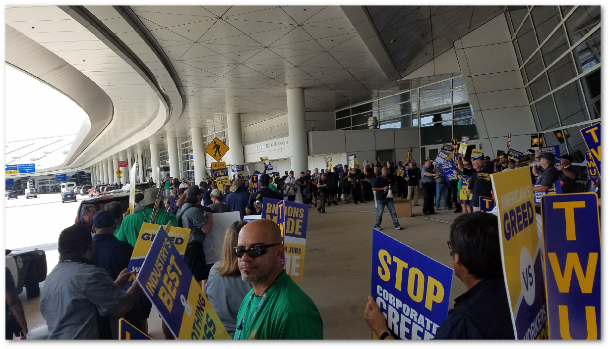 how many had showed in support, it was overwhelming, We were picketing the entire length of Terminal D. Our presence was known by all, It was loud and a visual surprise. There were reports of over 2500 Union Brothers and Sisters walking the walk and talking the talk. We we well represented!